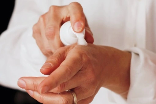 - Jeśli preparat jest w pojemniku, to nie nakładaj go dłonią, ponieważ może to spowodować nadkażenie masy kosmetycznej. Zamiast tego użyj zdezynfekowanej łopatki lub łyżeczki i przy jej pomocy wyłóż porcję kosmetyku na naczynie, a dopiero potem nałóż preparat na skórę. W przypadku opakowań z pompką nie ma tego problemu – są one bezpieczniejsze, ponieważ nie pozwalają zanieczyszczeniom z zewnątrz dostać się do środka.